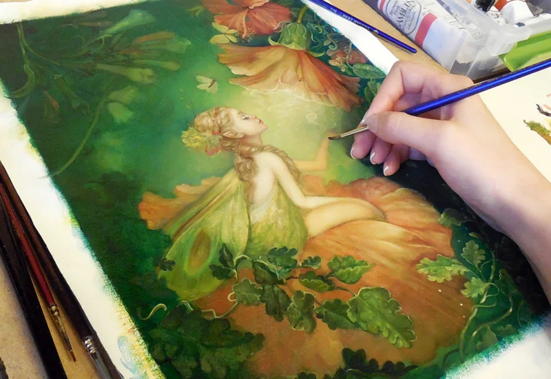 Also, I wanted to post a quick update of a new oil painting I am working on for the Faerie II show at Krab Jab Studios.